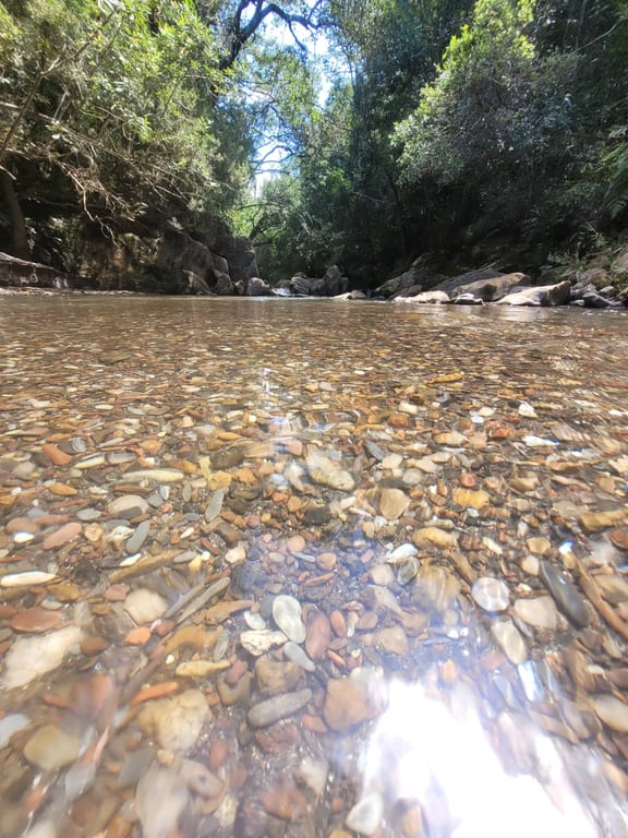 A trilha na água de 2,5 km, aproximadamente 1 hora de duração, nos conduz pelo encantador Vale Perdido até a majestosa Cachoeira da Coluna. Este é um local paradisíaco, perfeito para uma pausa revigorante de 30 minutos, onde podemos desfrutar das águas cristalinas, da beleza natural ao nosso redor e fazer um piquenique  A experiência de estar imerso na natureza, ouvindo o som das águas e sentindo a energia do lugar, é verdadeiramente revigorante.