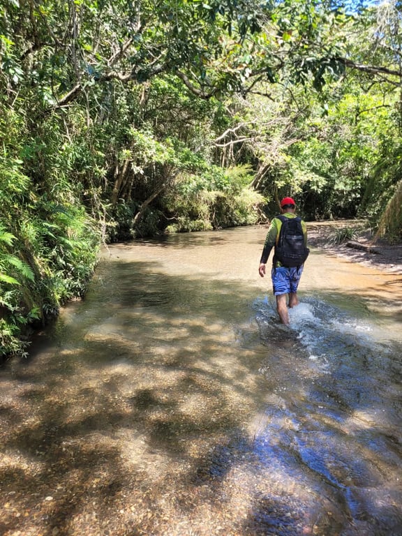 O Acqua Trekking no Vale Perdido é uma experiência inesquecível. Nossa jornada começa com uma saída de carro de Santo Antônio do Leite, percorrendo cerca de 9 km (40min.) até o ponto de partida da nossa aventura. (cliente precisa ter carro próprio para esse trajeto) Ao chegarmos ao local estratégico no Ribeirão do Mango, o principal afluente do Rio das Velhas, damos início ao nosso emocionante acqua trekking.