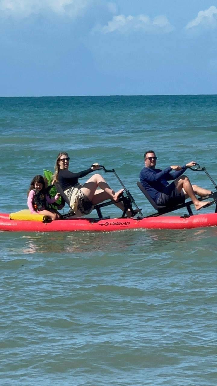 Viva uma experiência divertida no mar de Arraial d’Ajuda com o aluguel de bike aquática dupla (comporta 02 pessoas). As bikes flutuantes são estáveis, seguras e fáceis de usar, permitindo que você pedale sobre as águas enquanto aprecia as falésias coloridas e toda a beleza natural desse cenário paradisíaco.