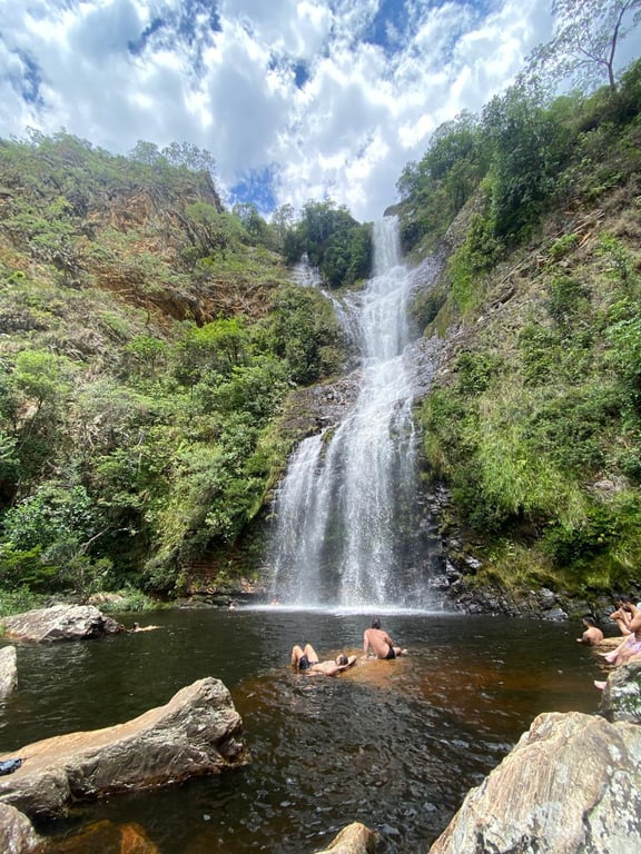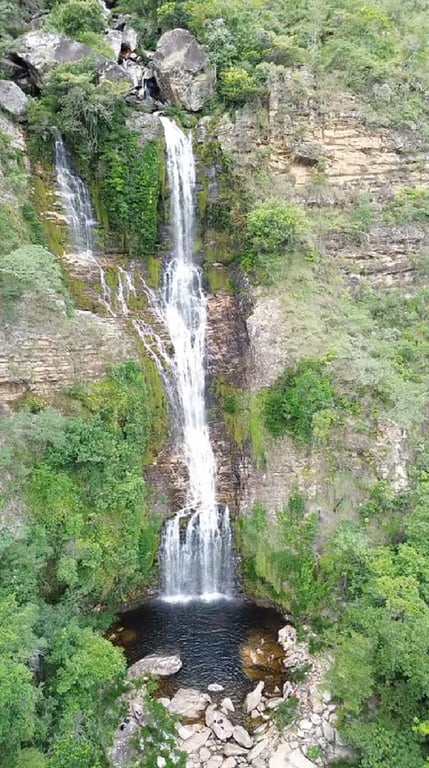 O ápice da jornada é a Cachoeira da Farofa: uma queda exuberante com cerca de 70 metros de altura, que despenca sobre paredões de quartzito formando um poço refrescante e revigorante. Um cenário inesquecível de força e serenidade no coração de Minas.
