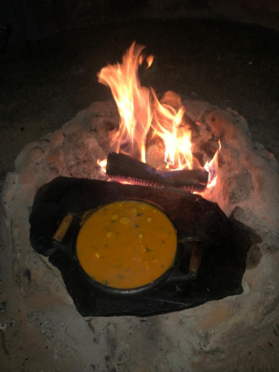À medida que o dia chega ao fim, todos são acolhidos em volta da fogueira, onde o Mestre Gustavo Barhuch serve caldos deliciosos, preparados com ingredientes frescos colhidos diretamente da horta e produtos agroecológicos da região. Os visitantes ainda podem deliciar-se com bebidas como infusões de ervas, hidromel, kombucha e sucos de frutas da estação, enquanto desfrutam de uma boa prosa, carregada de saberes e sabores. Para enriquecer ainda mais essa atmosfera, o artista Vilmar da Lapinha, toca uma trilha sonora encantadora para embalar a noite.