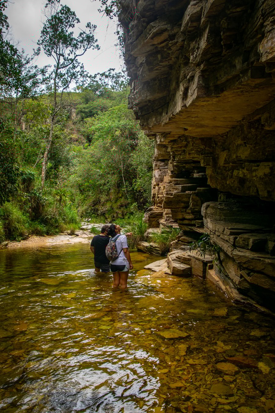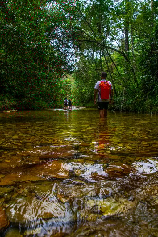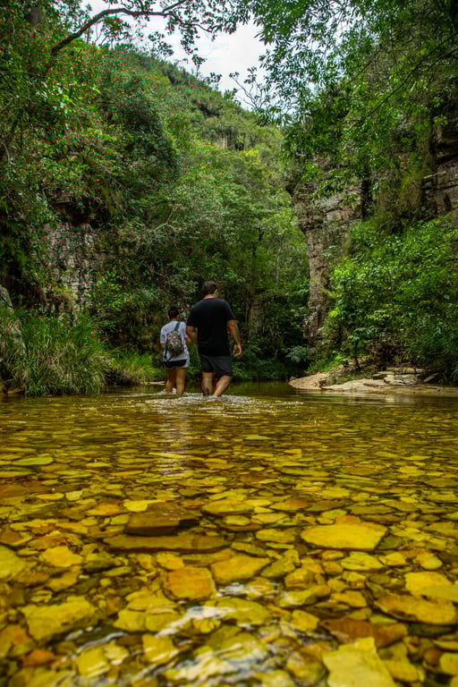 Para quem deseja explorar mais, a Trilha Verde (aquatrekking) proporciona uma experiência única: uma caminhada de aproximadamente 450 metros por dentro das águas cristalinas, com nível de água que varia da altura do joelho à cintura (dependendo da época). Um percurso leve, refrescante e ideal para contemplação e registros incríveis.