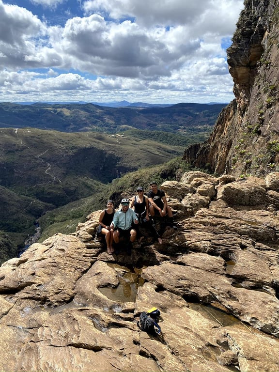 Embarque nesta jornada que te levará ao topo da Cachoeira do Tabuleiro! Essa aventura ímpar te proporcionará paisagens de tirar o fôlego, adrenalina e contato único com a natureza exuberante da Serra do Cipó. Saída do Cipó, de carro (cliente deve ter carro próprio), 40km até um ponto de apoio no Campo Redondo, onde estacionamos o carro. (local tem estrutura de banheiro). Seguimos de bike por 16km até nosso destino. Lá desfrutaremos de piscinas e cascatas naturais, com um visual de paisagens exuberantes! Poderemos nadar e sentir toda a energia desse lugar magnífico, contemplando a vista de cima da maior queda de Minas Gerais e a segunda maior do Brasil com seus 273 metros de queda livre!