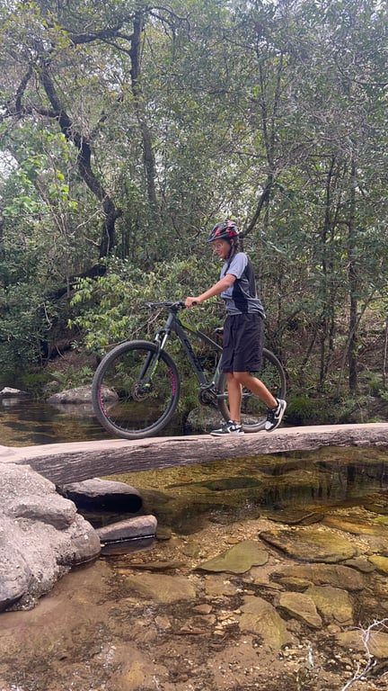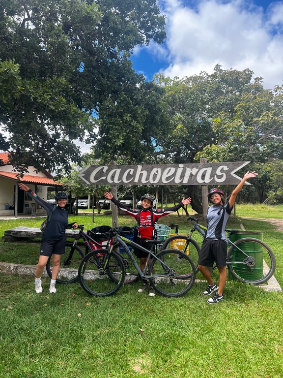 Pedal incrível pelo Parque Nacional da Serra do Cipó! Saída da Portaria do Parque, seguimos de bike por 06km e mais 02km de caminhada até nosso destino, trilha leve com poucos desníveis. Ao final da trilha, somos presenteados com a Cachoeira da Farofa - uma queda d’água exuberante, com cerca de 70 metros de altura, que despenca por uma parede de quartzito formando um poço ideal para um banho refrescante.