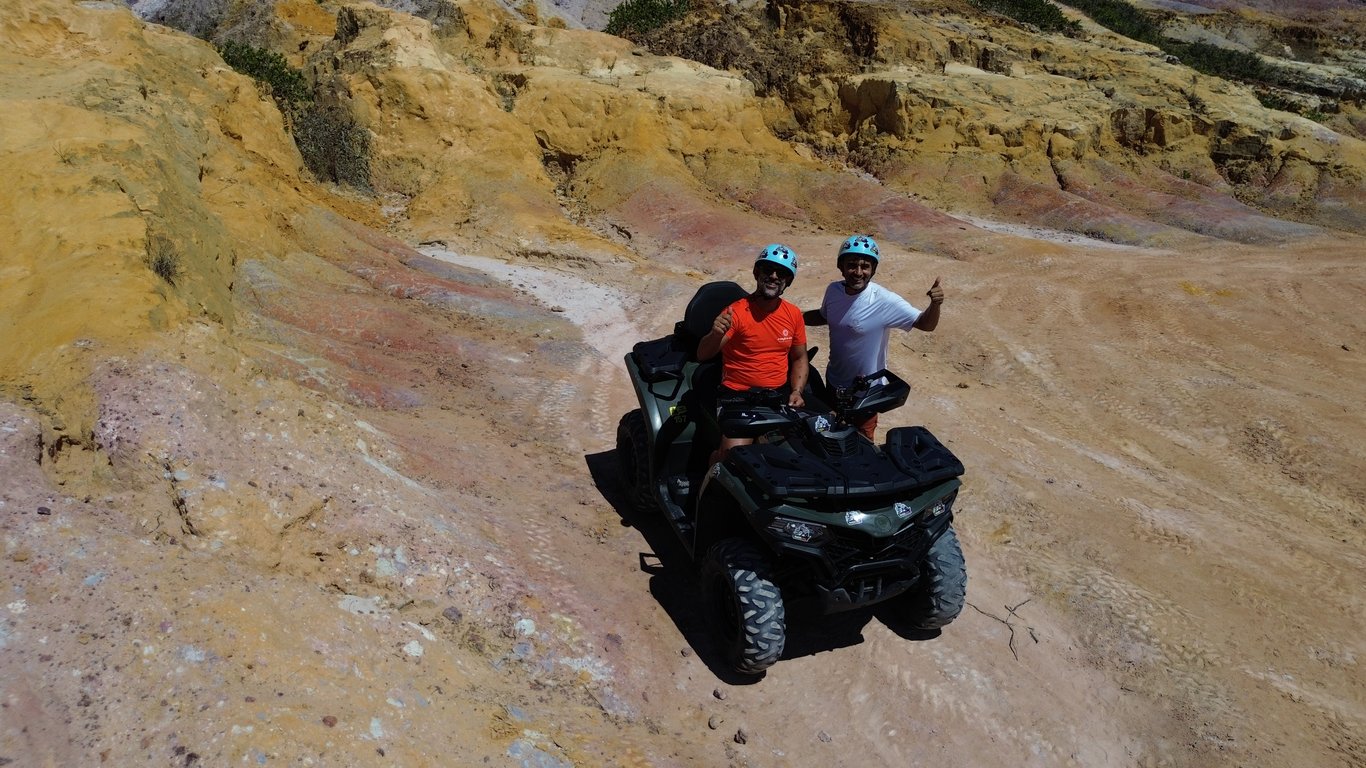 O Circuito Quadriciclo 3 Atrativos em Porto Seguro oferece uma emocionante aventura explorando as maravilhas naturais e culturais da região. Este passeio de quadriciclo leva você a três locais incríveis: as majestosas Falésias, a Aldeia Indígena Mirapé dos Pataxós e a deslumbrante Praia de Mutá em Coroa Vermelha.