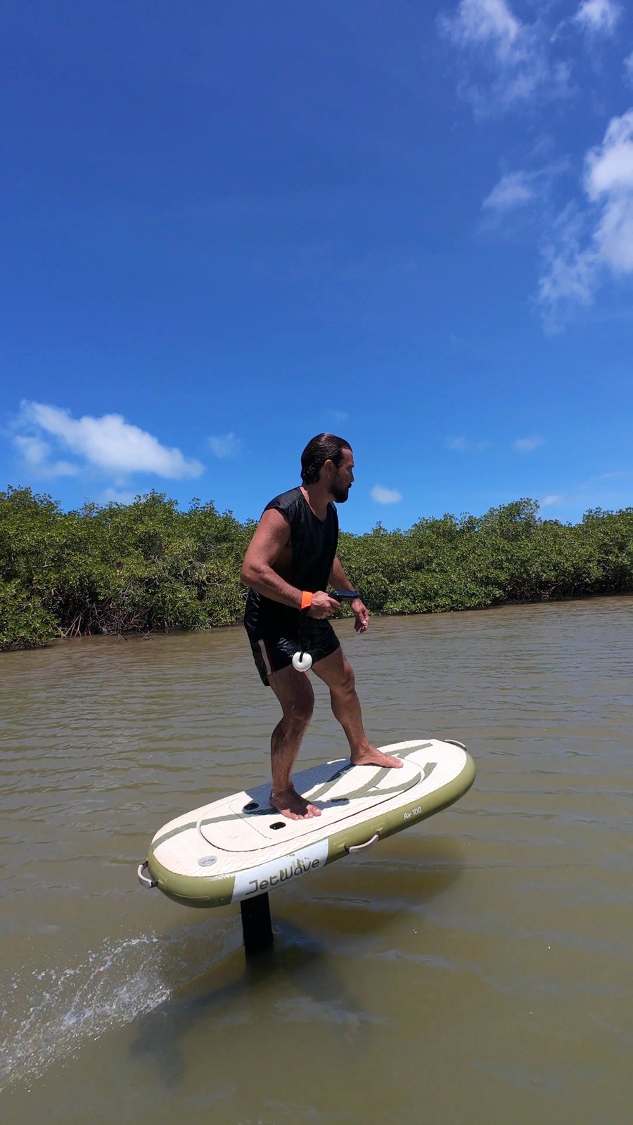 Viva essa experiência inovadora com e-foil em Porto Seguro, uma das atividades náuticas mais modernas do mundo. As pranchas elétricas permitem literalmente voar sobre a água, unindo tecnologia, adrenalina e contato com a natureza. A experiência é silenciosa, segura e guiada, com instrutor acompanhando na água,com bote de apoio motorizado; oferecendo orientações completas sobre uso do equipamento, técnica de pilotagem e segurança. O controle remoto permite ajustar a velocidade de forma intuitiva, tornando a atividade acessível também para iniciantes.