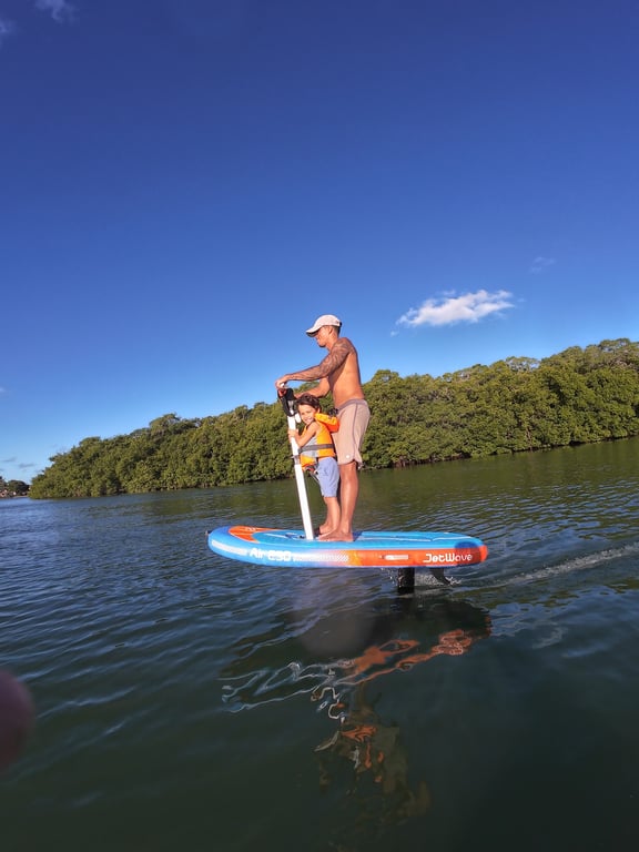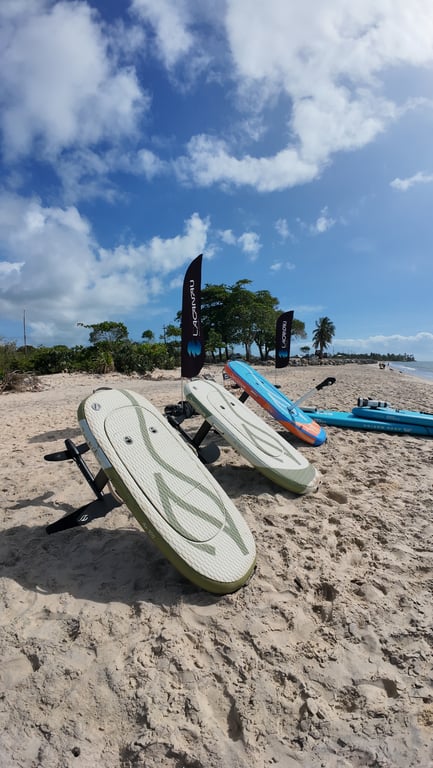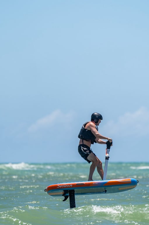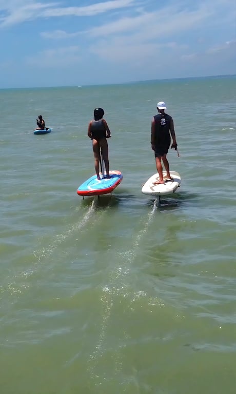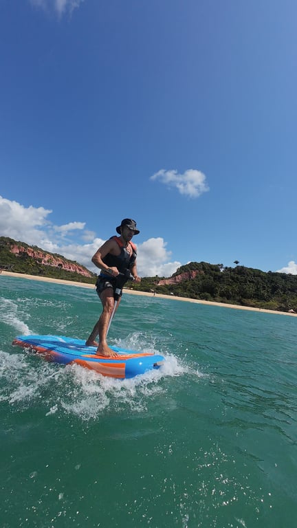 Viva essa experiência inovadora com e-foil em Porto Seguro, uma das atividades náuticas mais modernas do mundo. As pranchas elétricas permitem literalmente voar sobre a água, unindo tecnologia, adrenalina e contato com a natureza. A experiência é silenciosa, segura e guiada, com instrutor acompanhando na água,com bote de apoio motorizado; oferecendo orientações completas sobre uso do equipamento, técnica de pilotagem e segurança. O controle remoto permite ajustar a velocidade de forma intuitiva, tornando a atividade acessível também para iniciantes.
