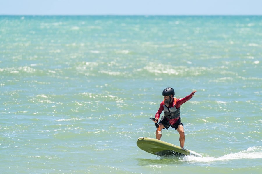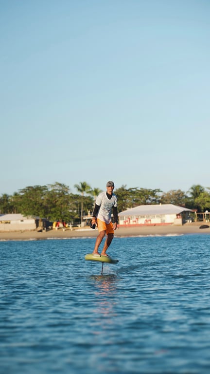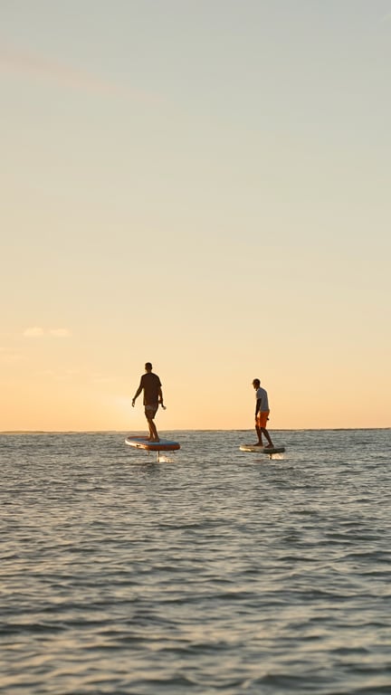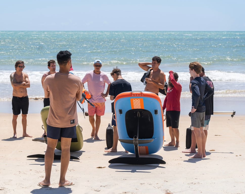 Viva essa experiência inovadora com e-foil em Porto Seguro, uma das atividades náuticas mais modernas do mundo. As pranchas elétricas permitem literalmente voar sobre a água, unindo tecnologia, adrenalina e contato com a natureza. A experiência é silenciosa, segura e guiada, com instrutor acompanhando na água,com bote de apoio motorizado; oferecendo orientações completas sobre uso do equipamento, técnica de pilotagem e segurança. O controle remoto permite ajustar a velocidade de forma intuitiva, tornando a atividade acessível também para iniciantes.