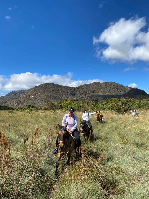 Explore a beleza natural do Parque Nacional da Serra do Cipó, com um passeio a cavalo até a deslumbrante Cachoeira da Farofa. Este passeio oferece uma experiência única, percorrendo 9 km de ida e 9 km de volta em meio a paisagens deslumbrantes e vegetação exuberante. Durante a cavalgada, você terá a oportunidade de se conectar com a natureza e admirar a rica biodiversidade da região. Ao chegar à cachoeira, você poderá desfrutar e relaxar ao som das águas, um verdadeiro refúgio para os amantes da natureza.