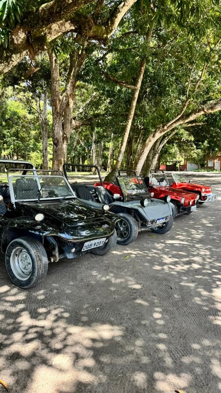 Este passeio acontece mesmo com chuva. Nesta condição, adicionamos as capotas nos buggys e disponibilizamos sem custo adiciomal capas de chuva descartáveis para os participantes. A chuva não impede a visitação dos atrativos do roteiro.