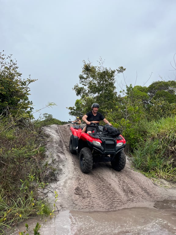 Explore as deslumbrantes paisagens de Arraial d'Ajuda em uma aventura emocionante a bordo de um quadriciclo 450cc automático. O passeio leva você a duas das praias mais belas da região: a Praia de Pitinga e a Praia de Taípe (trilha exclusiva). Essa experiência oferece uma combinação perfeita de adrenalina e beleza natural, proporcionando uma forma única de explorar este paraíso tropical.