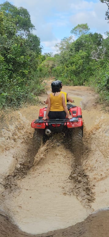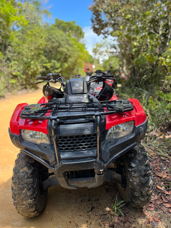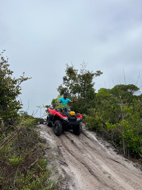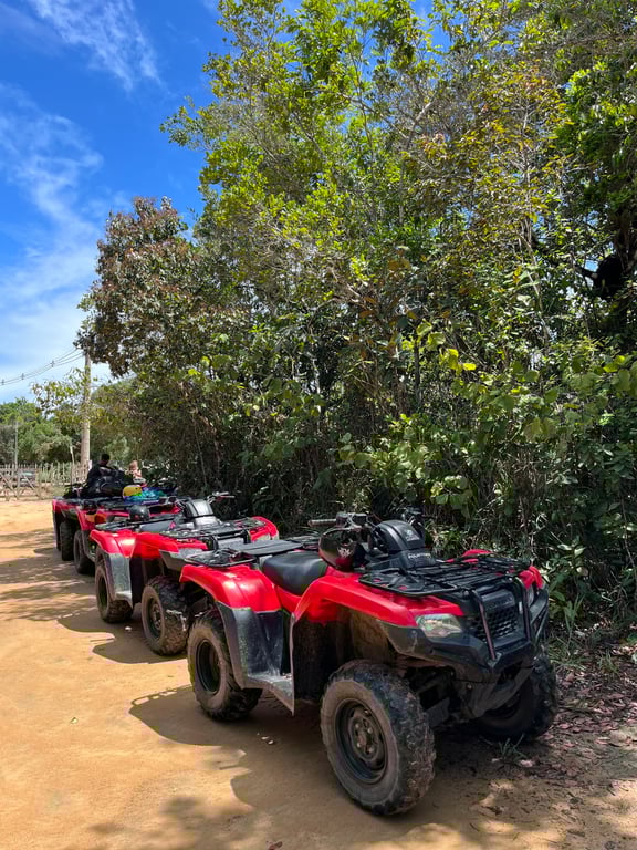 Explore as deslumbrantes paisagens de Arraial d'Ajuda em uma aventura emocionante a bordo de um quadriciclo 450cc automático. O passeio leva você a trêss das praias mais belas da região: a Praia de Pitinga, a Praia de Taípe (trilha exclusiva), e a Praia dos nativos em Trancoso. Essa experiência oferece uma combinação perfeita de adrenalina e beleza natural, proporcionando uma forma única de explorar este paraíso tropical.