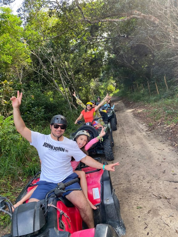 Cada quadriciclo comporta 2 pessoas, neste caso a dupla deve definir quem será o condutor e quem será o carona. O condutor deve ser maior de idade, acompanhantes devem ter idade mínima de 10 anos.