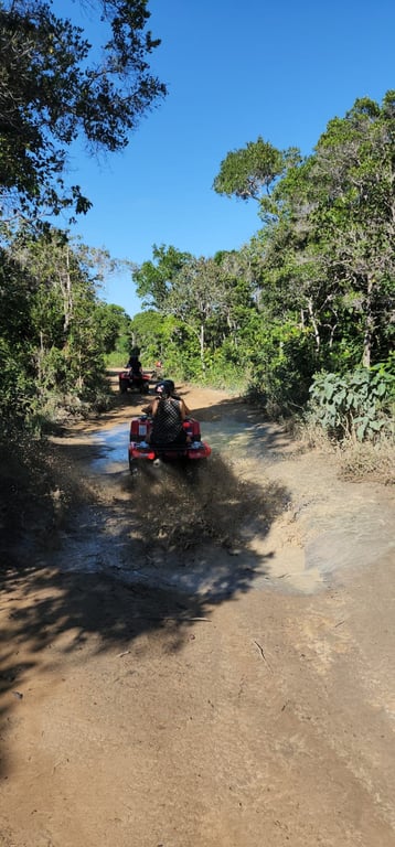 Explore as deslumbrantes paisagens de Arraial d'Ajuda em uma aventura emocionante a bordo de um quadriciclo 450cc automático. O passeio leva você a duas das praias mais belas da região: a Praia de Pitinga e a Praia de Taípe (trilha exclusiva). Essa experiência oferece uma combinação perfeita de adrenalina e beleza natural, proporcionando uma forma única de explorar este paraíso tropical.