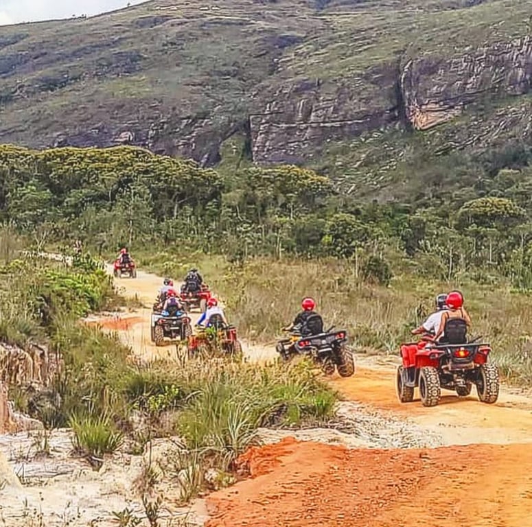 Neste passeio emocionante, você assume a direção do quadriciclo enquanto nosso guia experiente lidera o grupo de moto, garantindo segurança e compartilhando todo o seu conhecimento sobre a região. Sinta a liberdade e a adrenalina de percorrer trilhas off-road em meio à natureza exuberante da Serra do Espinhaço. O roteiro inclui parada em dois tesouros naturais de Lavras Novas: a Represa do Custódio e a Cachoeira dos Três Pingos.