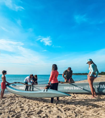 A experiência começa antes mesmo de entrar na água. Vivenciamos juntos a montagem e o preparo da canoa, entendendo cada detalhe do equipamento e criando, desde o início, uma conexão com o barco, com o grupo e com o ambiente ao redor. Antes da saída, são passadas todas as orientações de segurança: embarque e desembarque, técnica de remada, comandos e palavras de segurança. Tudo conduzido com atenção, respeito e presença. Em seguida, um momento de aquecimento leve — mais do que físico, um convite à conexão: consigo mesmo, com o grupo e com a natureza que nos acolhe.