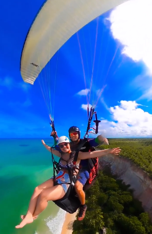 Este voo duplo com instrutor oferece a oportunidade única de apreciar a beleza natural da região de um ângulo totalmente novo e emocionante! O ponto de encontro é na deslumbrante Praia da Pitinga, onde você receberá todas as instruções necessárias para garantir um voo seguro e prazeroso. Você irá sobrevoar aproximadamente 3km sobre as impressionantes paisagens das Falésias da Pitinga, Lagoa Azul e Taipé.